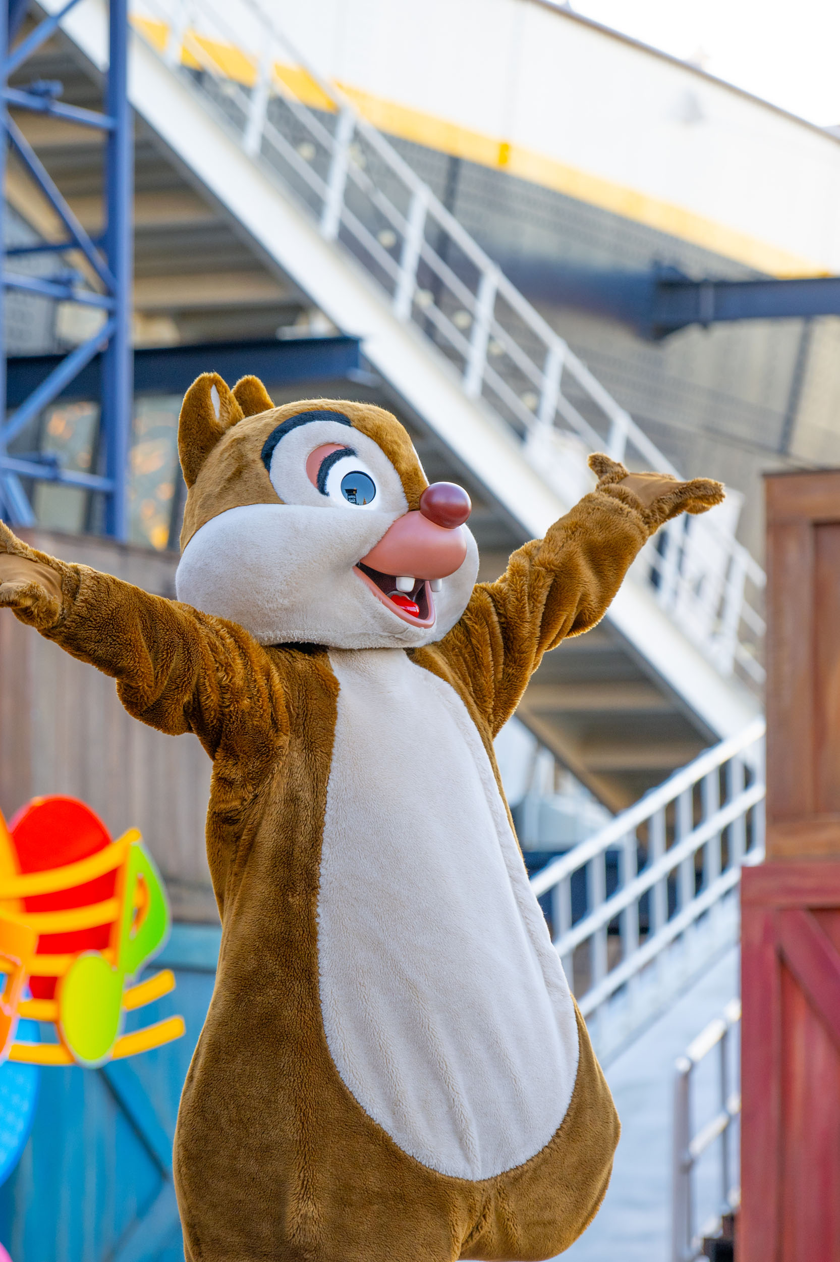 70-200mm f2.8 通しの大三元レンズや、200-600などの超望遠レンズを持っていくとドアップでキャラクターが撮影できます。